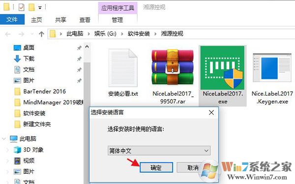 1、下载数据包然后解压,双击“NiceLabel2017.exe”选择“简体中文”然后点击“确定”