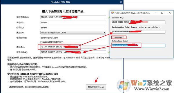 10、随便输入名称和电子邮件然后点击下方的“脱机激活”将软件上的注册编码复制到软件上然后点击"generate生成激活码,再将激活码复制到软件上并点击“激活”