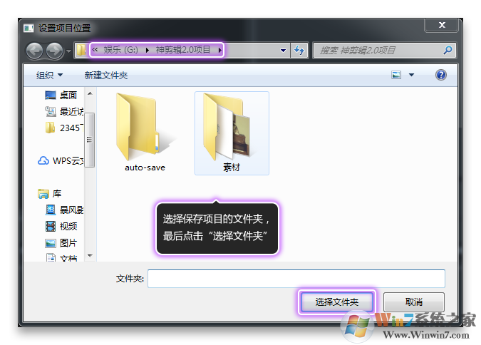 ③、选择保存项目的文件夹后,点击“选择文件夹”,如图3所示。
