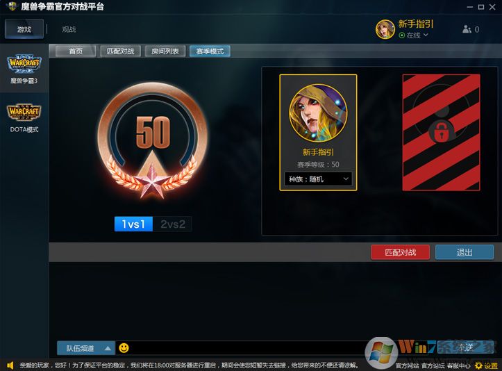 赛季模式按照官方赛季机制,定期更新,赛季等级是玩家实力的体现,每个赛季的优胜者还将获得线下赛的参赛资格。在赛季模式中你还能收获WarIII的种族经验与Dota的英雄经验。目前暂未开放。
