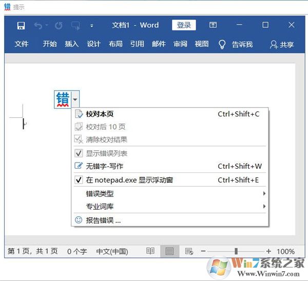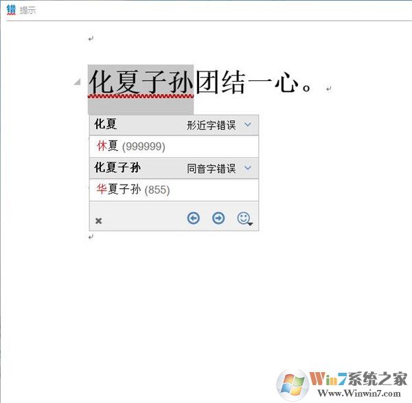 鼠标点击错别字,会出现提示窗口。窗口中列出可能正确的词。