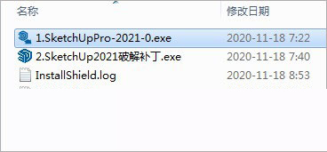 1、下载解压,得到sketchup Pro2021安装包和草图大师2021破解补丁;
