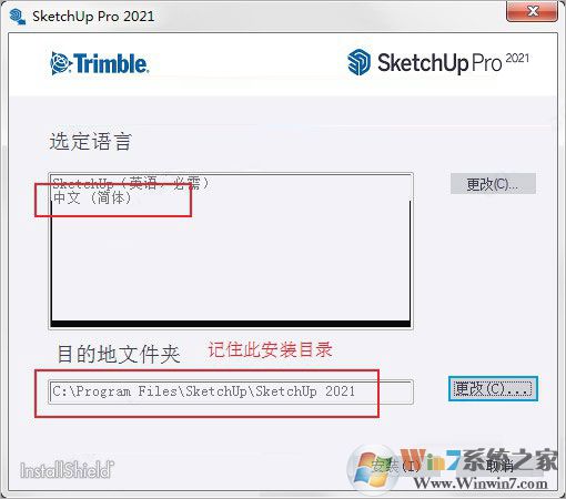 2、首先双击运行"1.SketchUpPro-2021-0.exe"程序,选择简体中文语言,按默认目录进行安装;