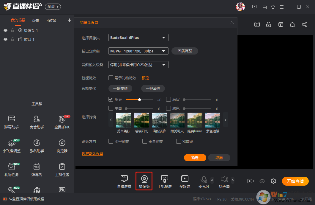 摄像头可以选择已连接的摄像头设备,并且也支持添加第三方如YY伴侣的虚拟摄像头,设置好各项参数后,点击“确定”即可添加摄像头。