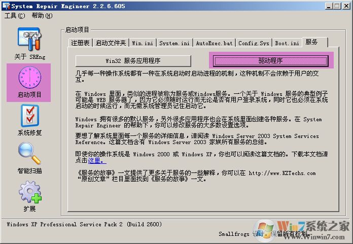 SREng英文全称System Repair Engineer,中文翻译为系统修复工程师,是一款计算机安全辅助和系统维护辅助软件。主要用于发现、发掘潜在的系统故障和大多数由于计算机病毒造成的破坏,够自动扫描电脑上系统故障以及被病毒破环的地方,并提供一系列的修改建议和自动修复方法。