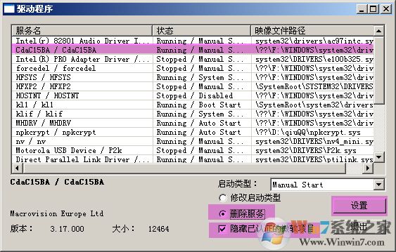 进入后,勾选“隐藏微软已经认证的项目”。然后点中你要删除的驱动
