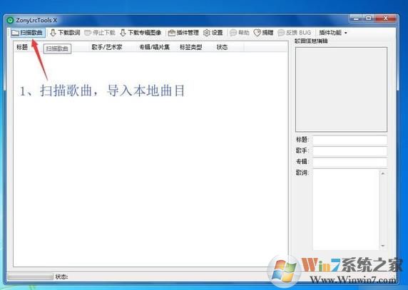 1、扫描电脑中的歌曲,或导入本地曲目;