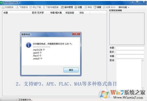 2、扫描完成后显示曲目列表,支持MP3及无损格式APE、FLAC等多格式导入