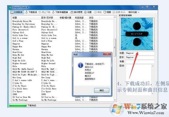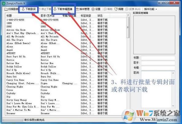 4、批量下载封面和歌词之后,点击歌曲,会在右边显示专辑图像和歌曲信息。