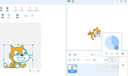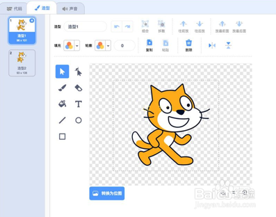 打开scratch3.0,选中一个角色,然后切换到造型选项卡(本例使用默认角色小猫)。