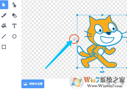 刚刚开始接触scratch2.0的小朋友设置造型中心的时候内心肯定是崩溃的,因为你拖动造型一次,造型中心的位置都会移动一下,给人的错觉就是造型中心一直在变化。但是3.0的版本中固定了中心位置,只要将造型拖到中心位置即可。