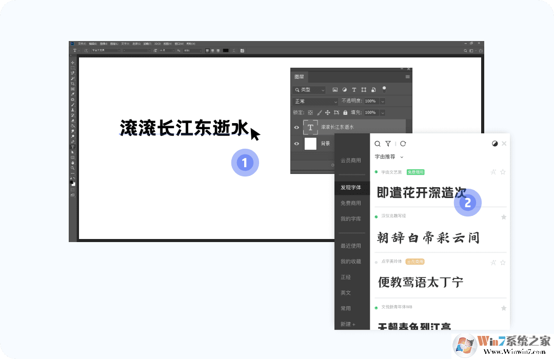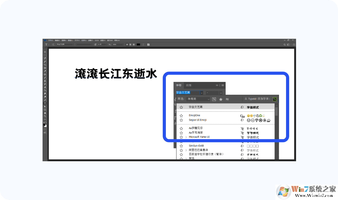 2、应用字体,轻松简便:在设计软件中框选字体,再点击字体预览区,字体变化