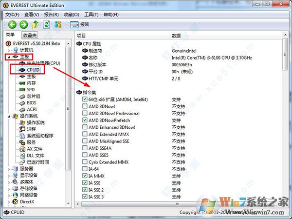 通过查看指令集可以判断自己的CPU是否大强。其实是支持的指令越多,代表你的CPU越好。这些查看电脑硬件信息的菜单我就不多说了,大家可以自己点击菜单里的选项去慢慢查看。