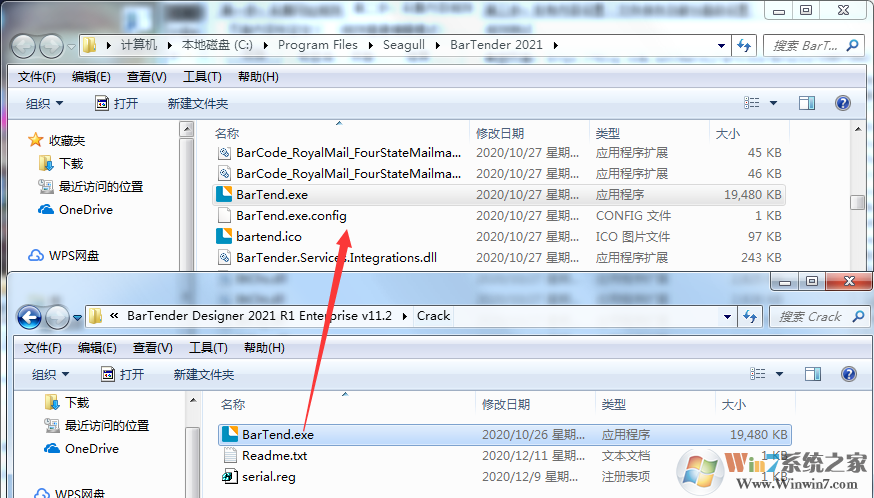 1、下载安装软件后打开文件夹位置,将【Crack】中的【BarTend.exe】破解补丁复制到,打开的文件夹中。