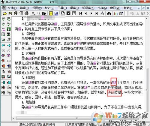 黑马校对软件的研制基于覆盖社会科学和自然科学各领域的10000亿字汉语语料的分析,采用国际计算语言先进的语法分析和语料库统计相结合的方法,具有汉语切分技术、汉语语法分析技术、汉语依存关系分析技术等 优秀的中文智能技术。内嵌79个专业词库、8000万条专业词汇、600万条错误核心库,支持各种主流文字处理和排版系统的文件格式,支持各种专业文稿的校对。查错准确率和校对效率已经达到一个崭新的高度,是国内市场上占有率最高、实用性最强的专业校对软件,为各类文稿的校对提供最佳解决方案。黑马校对软件特色