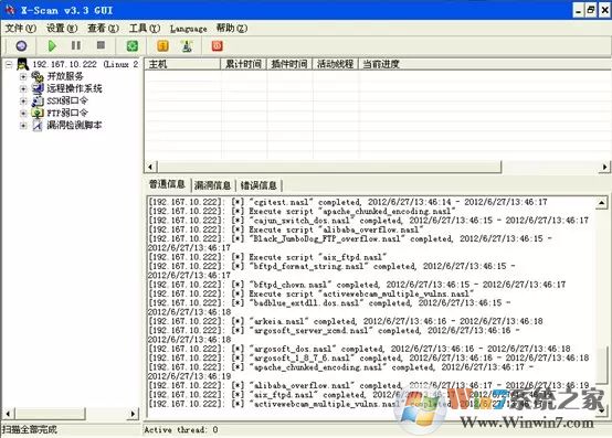 保存好配置后,点击工具栏的开始按钮即可进行扫描,x-scan界面具有详细的扫描状态,扫描时间视扫描的深度和广度而定。