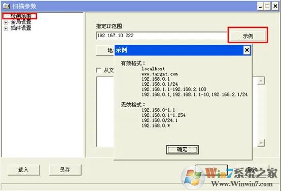1、检测范围:设置待扫描的IP,可以按示例方式设置检测范围,或者从文件获取主机列表。