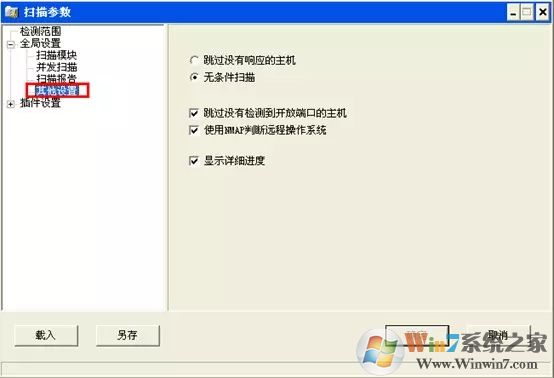 其它设置:设置对目标设备的检测机制等,如果是单个设备,建议使用无条件扫描,因为测试发现x scan判断主机是否存活不是很准确。