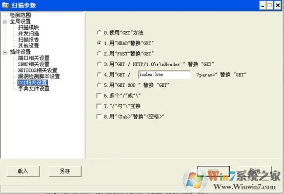 CGI相关设置:设置CGI(公用网关接口)的扫描策略,主要是针对web服务器的扫描,一般默认。