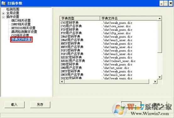 字典文件设置:设置扫描弱口令时用到的字典,可以编辑字典以自定义弱口令