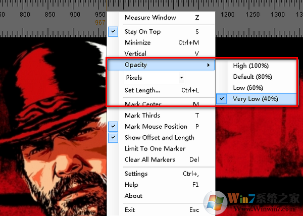 二、点击右键设置尺子位窗口长度,就能将尺子变成跟你所需要修改的窗口的长度一样。