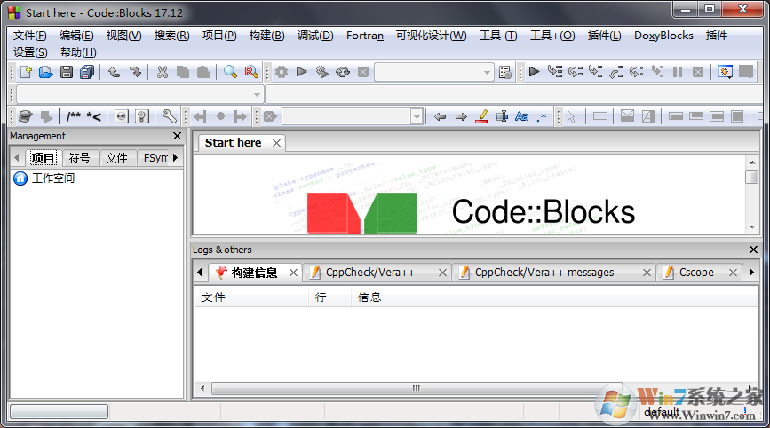5) 再次启动 CodeBlocks,你会看到全新的汉化的 CodeBlocks,虽然没有完全汉化,但起码不会影响日常的正常使用。