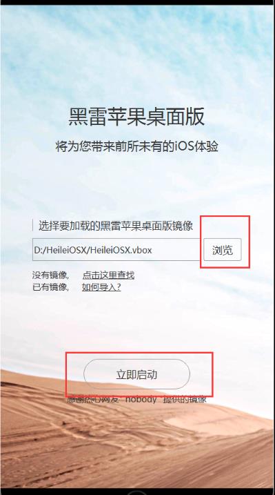 直接存放在想要存放的磁盘中,例如:D盘,直接存放点击浏览,增加镜像,找到解压的文件heileiosx.vbox添加文件,点立即启动