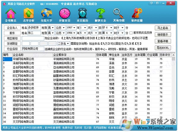3、自动根据法人和股东八字五行匹配自动弥补搭配起名数秒快速生成数10000以上名字。