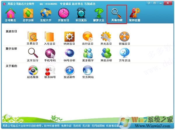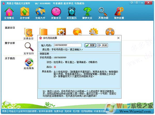 7、支持文字五行、手机号码、QQ号分析、更多数字、网名分析