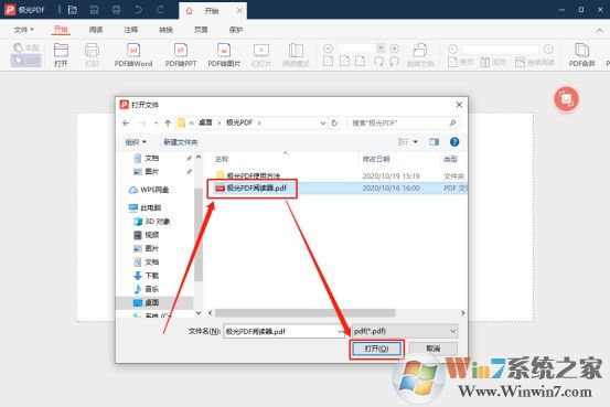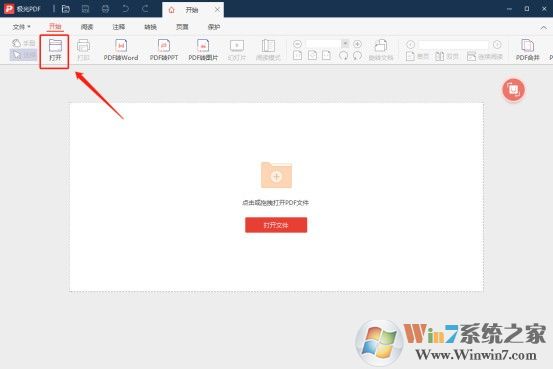 1、打开极光PDF阅读器,点击首页左上角的“打开”,进入需要打开的pdf文件存放位置。