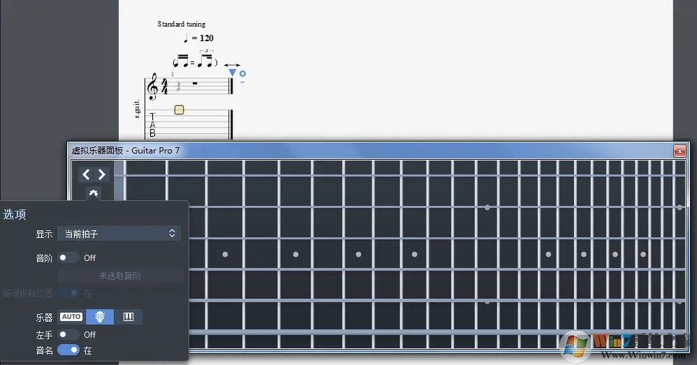增加像吉他一样的工具,标准符号会自动转置到指法谱——这对所有痕迹,包括钢琴、声音或鼓。