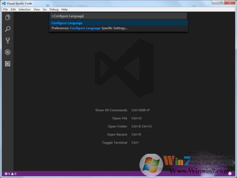 1、打开进入软件,按下F1快捷键或者Ctrl+Shift+P,切入到命令行模式,输入“Configure Language”