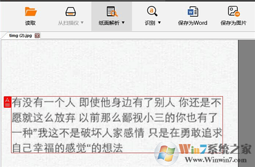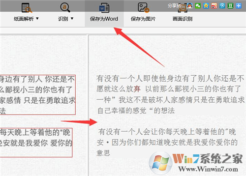 软件对图文混排的文档具有自动分析功能,将文字区域划分出来后自动进行识别。