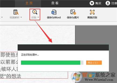3、点击“识别”按钮,软件将会进入文件识别状态,将解析的文字全部识别出来,识别结果将会出现在软件右侧