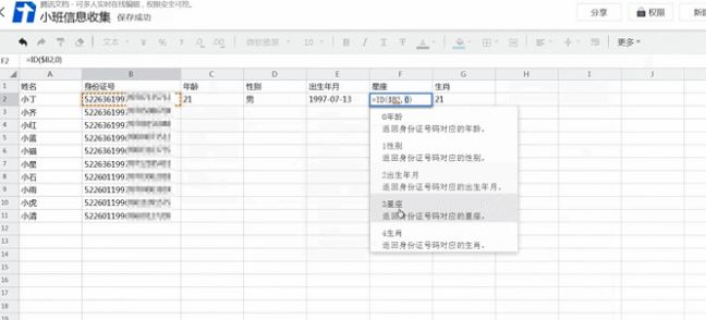 ID函数可以实现一个函数提取身份证号码中隐藏的信息,例如年龄、性别、出生年月、星座、生肖,不再需要嵌套大量的函数进行信息提取。同时,ID函数会自动对身份证号码的有效性进行验证,错误的身份证号码会提示错误。