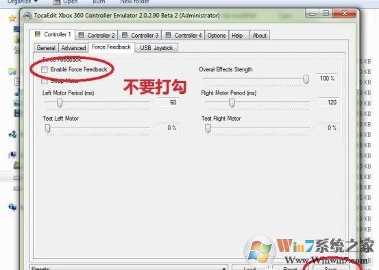 然后再看Force Feedback里的那个Enable Force Feedback有没有大勾,如有得话请取消打勾,否则玩游戏时会弹出,设好后就可以按右下角的Save保存。