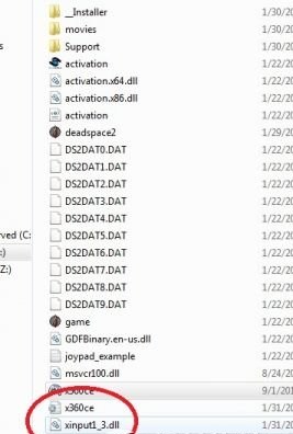 保存后你会看到游戏文件夹里生成多出x360ce.ini和xinput1_3.dll两个文件。