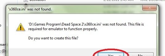 开始会弹出题示x360ce.ini文件找不到,按yes到下一步。