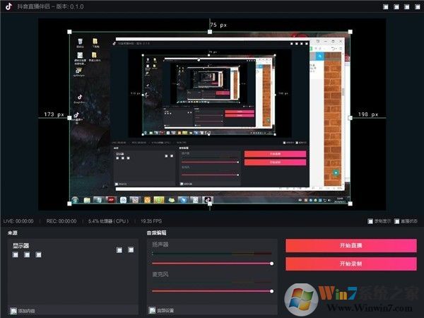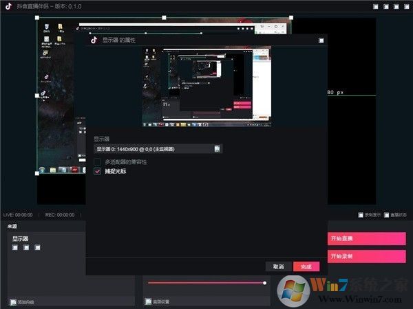 4、这个时候我们已经可以在抖音直播伴侣的监视器界面看到你的显示器画面了,下面我们可以进行一些个性化设置。