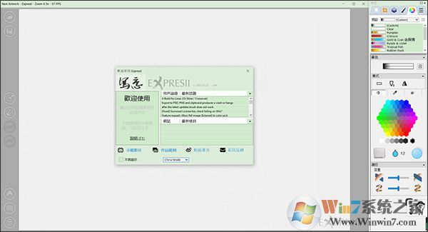Expresii的工具视窗显示分为五个选项卡的选项:纸料、纸张操作、画笔、颜色加载和程式选项。