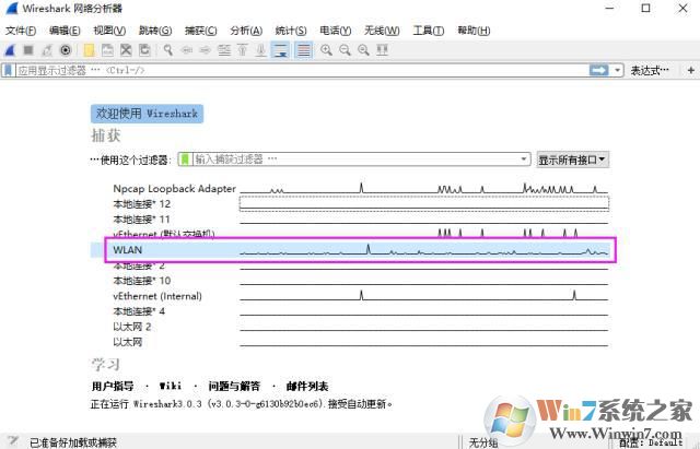 我们可以选择有流量的网卡,比如使用无线就用无线网卡,本地链接就用本地网卡,接下来,你可能看到了如下的画面。