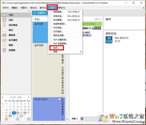 EssentialPIM是一款个人时间日程安排软件,具有相当方便的操作接口,能以电子化的形式保存您的信息,您所有的日程、任务、记事、通讯录、登陆密码都保存在图形化界面中且形式简便,让使用者能够对于所排定的行程一目了然,而每一个事件也都允许使用者进行夹档,让你可以把例如会议结果、计划案等数据附带于该记录中!