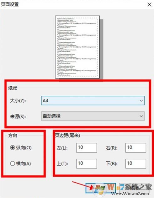 2、可以设置纸张大小,方向和页边距等,如何点击确定即可。