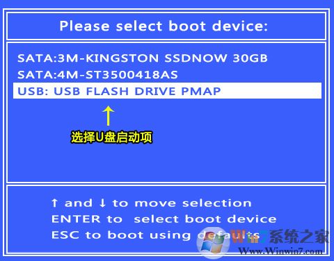使用键盘上的↑↓键选择启动项到U盘并按【Enter】(回车键)进入系统