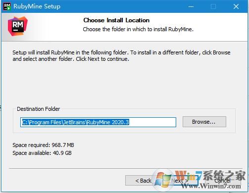 3、安装目录默认为【C:\Program Files\JetBrains\RubyMine 20xx】建议不更改以便后面的操作;