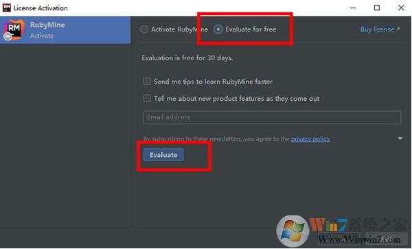 7、运行,跳过设置,勾选Evaluate for free,点击Evaluate