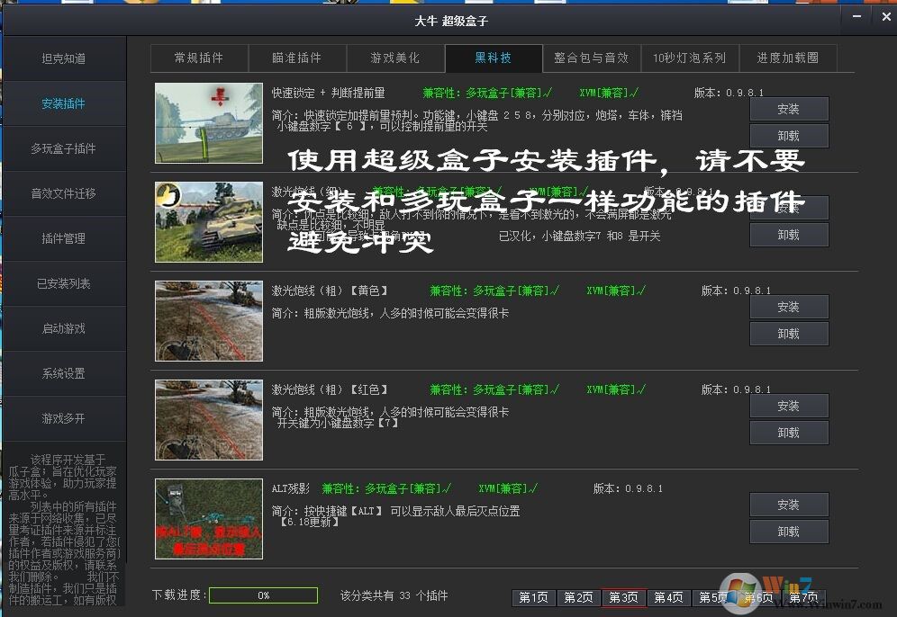 第三步,用超级盒子安装插件,参考下图,装好后直接超级盒子最小化即可(超级盒子教程)
