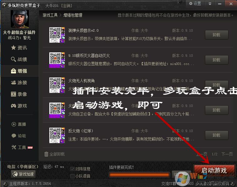 第四步,用多玩盒子启动游戏,这样多玩盒子有效果,同时超级盒子的插件也会有效果