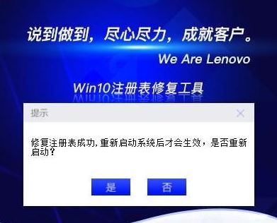 5、执行成功,需重启系统后方可生效。点击“是”,需要先完成软件调研后会自动进入系统重启;点击“否”则返回工具的操作页面。