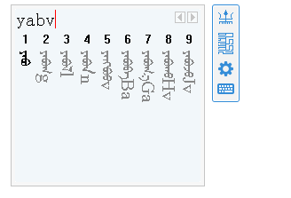 每个音节的首字母必输、其余字母可以省略。如输入蒙古文词??????????只需要输入(aqlh),候选框中便出现该词图。但其出现位置比较靠后,在输入码a后补充i,即可将该词提升到第一个位置图。以此类似,可通过补充每个音节首字母后的其余字母,直至您需要的词出现为止或出现在候选框靠前位置。
